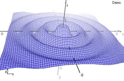Fz(x,y)=e^(-r/4)*sin(3*r)